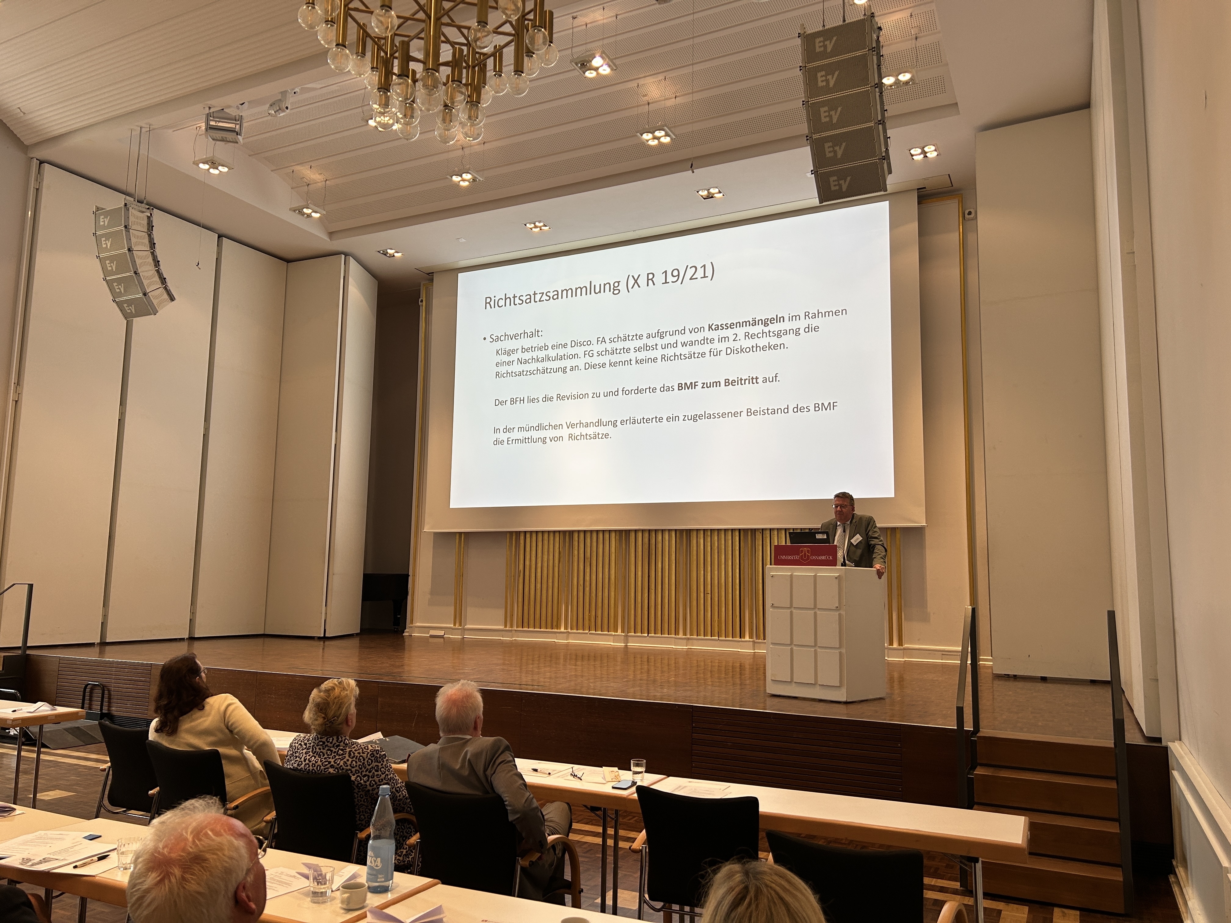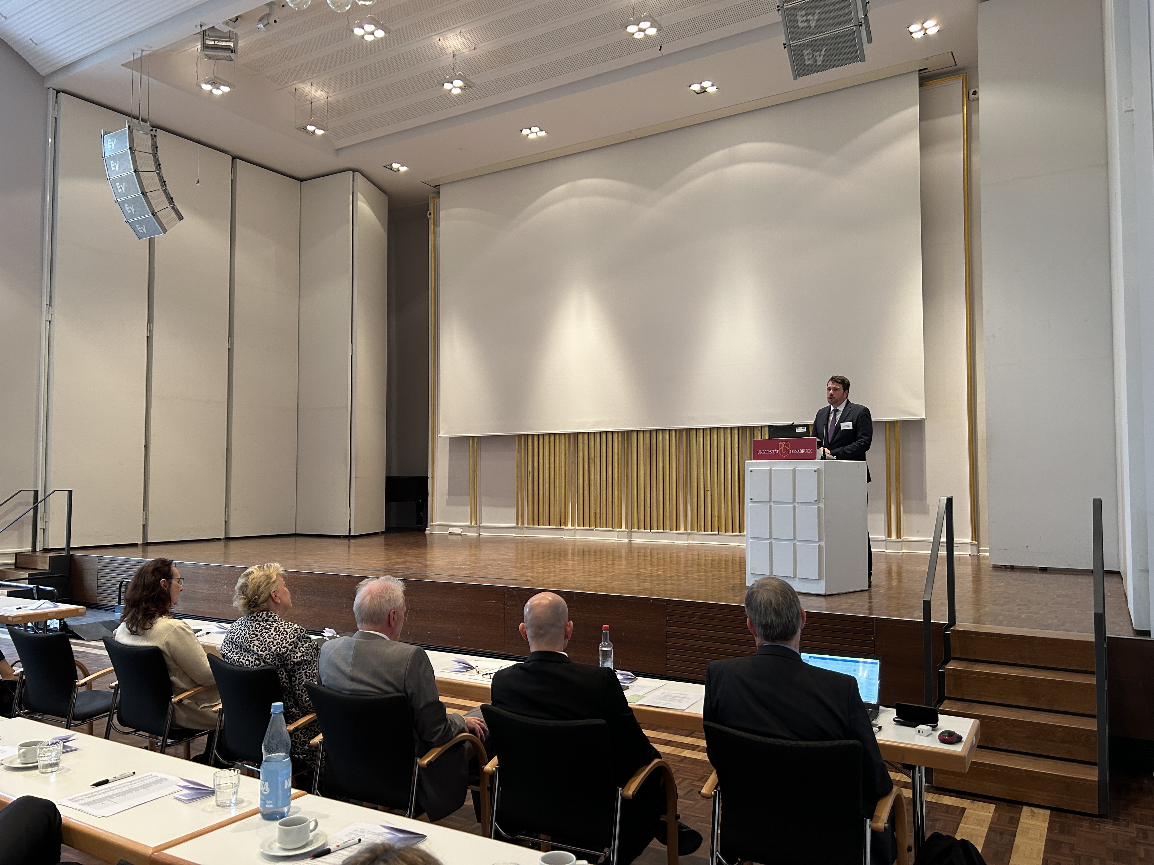 Nach Grußworten der Niedersächsischen Justizministerin Dr. Kathrin Wahlmann, der Präsidentin des Niedersächsischen Finanzgerichts Petra Hager, des Vizepräsidenten der Universität Osnabrück Prof. Dr. Jochen Oltmer und des Dekans des Fachbereichs Rechtswissenschaften an der Universität Osnabrück Prof. Dr. Steffen Lampert starteten die Teilnehmer in die dreitägige Veranstaltung.