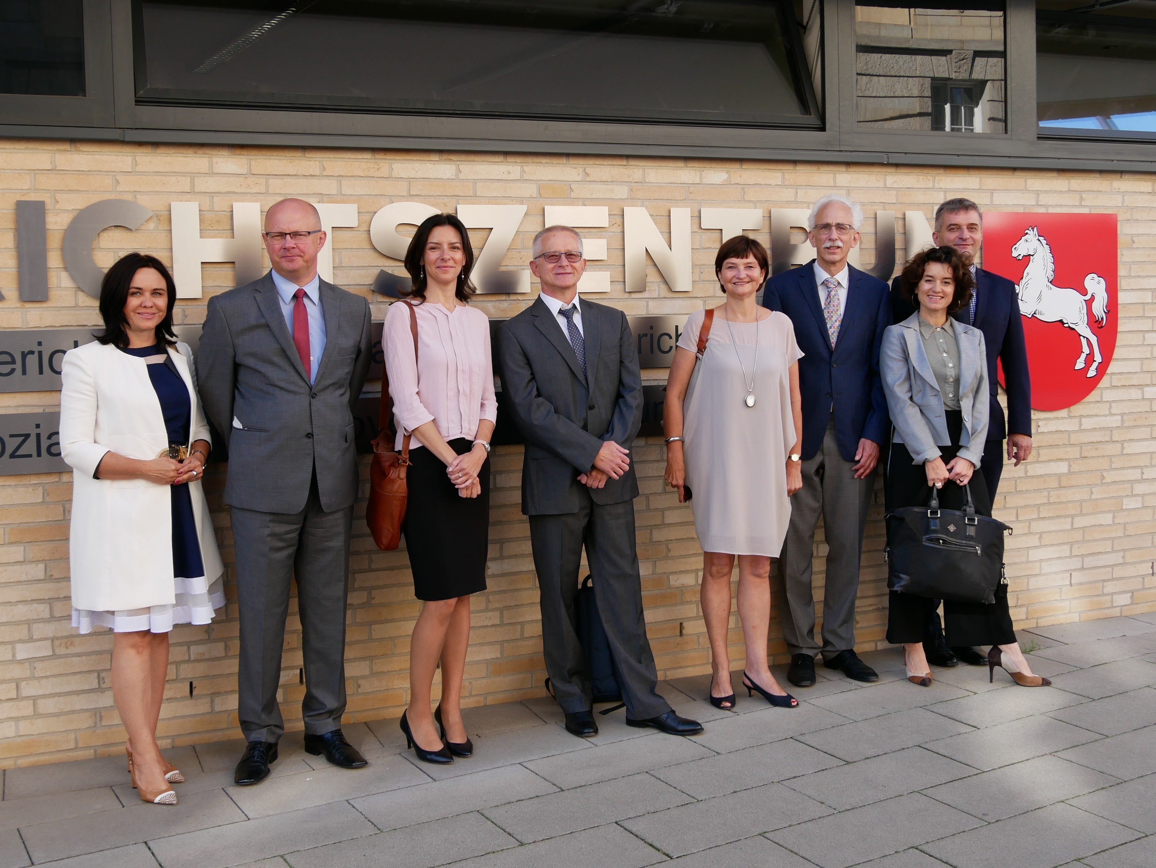 Eine Delegation des polnischen Wojewodschaftsverwaltungsgerichts aus Poznan (Polen) hat vom 7. bis 9. August 2019 das Niedersächsische Finanzgericht besucht. Der Präsident des Niedersächsischen Finanzgerichts Hartmut Pust begrüßte den Vizepräsidenten Jakub Zielinski sowie fünf weitere polnische Kolleginnen und Kollegen. Bereits seit 2003 findet dieser Austausch zwischen der polnischen und der deutschen Fachgerichtsbarkeit statt und die gegenseitigen Besuche dienen dazu, die wechselseitige Kenntnis des Steuerrechts zu vertiefen. „Gerade auf dem Gebiet des Umsatzsteuerrechts, welches deutliche europarechtliche Bezüge aufweist, ist der Blick über den eigenen nationalen Tellerrand wichtig und interessant.“, so Hartmut Pust. Thema des fachlichen Austausches war demgemäß auch die Rechtsprechung des Europäischen Gerichtshofes aufgrund von Vorabentscheidungsersucher deutscher und polnischer Fachgerichte.
